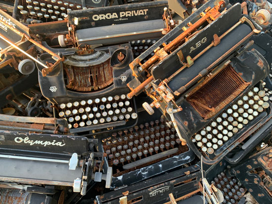 Die Zwischenschritte im eigenen Schaffensprozess dokumentierte Nolte durch das Sammeln alter Schreibmaschinen, jedes Objekt steht für einen Arbeitsschritt, der verworfen wurde, ist ein Platzhalter eines Zeitabschnitts.