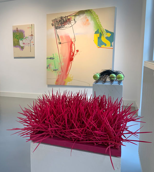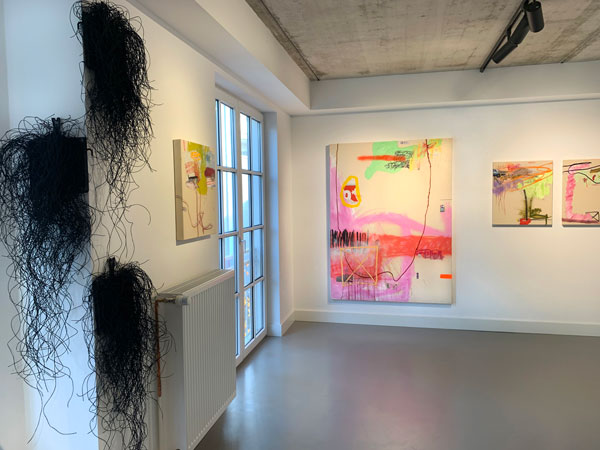 Und was im Atelier auf natürliche Weise nebeneinander, miteinander und zueinander entsteht, tritt im Galerieraum in einen anderen Dialog: Singuläre künstlerische Strategien und Methoden erweitern und verbinden sich, unterziehen einander der Prüfung oder geraten in ihren Behauptungen in Widerspruch.